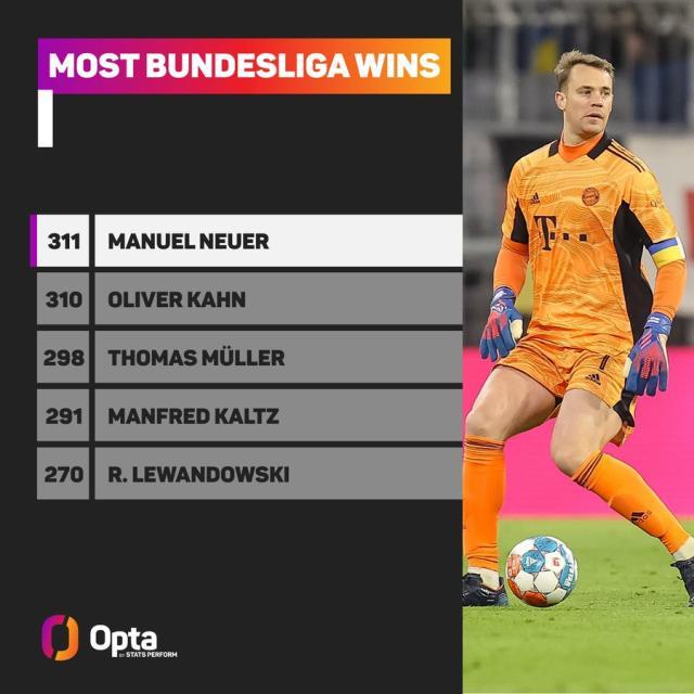 主场对阵柏林联,对拜仁而言是一场具有里程碑意义的比赛:拜仁的德甲总参赛场次达到1935场,创造新的历史。而在这场创造历史的比赛中,科芒先拔头筹,夸西锦上添花,莱万多夫斯基二度梅开,拜仁4比0大获全胜,多打一场的情况下,将积分优势再度扩大到了7分。凭借这场胜利,诺伊尔也以311场胜利超越卡恩,成为德甲胜场第一人。